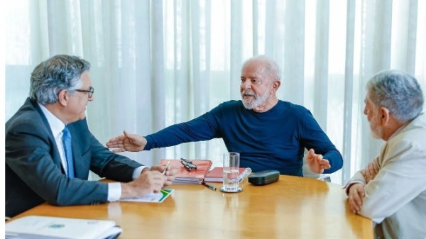 Nesta segunda, também publicou uma foto de Lula com Alexandre Padilha (Relações Institucionais) e o assessor especial para assuntos internacionais, Celso Amorim.