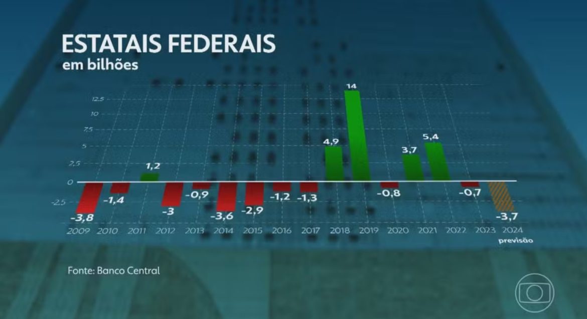 As contas das empresas estatais federais do Brasil devem fechar 2024 com o maior rombo dos últimos 15 anos. De janeiro a agosto de 2024, o déficit atingiu R$ 3,3 bilhões. No entanto, a expectativa do governo Luiz Inácio Lula da Silva é que esse valor chegue a R$ 3,7 bilhões até o final do ano.