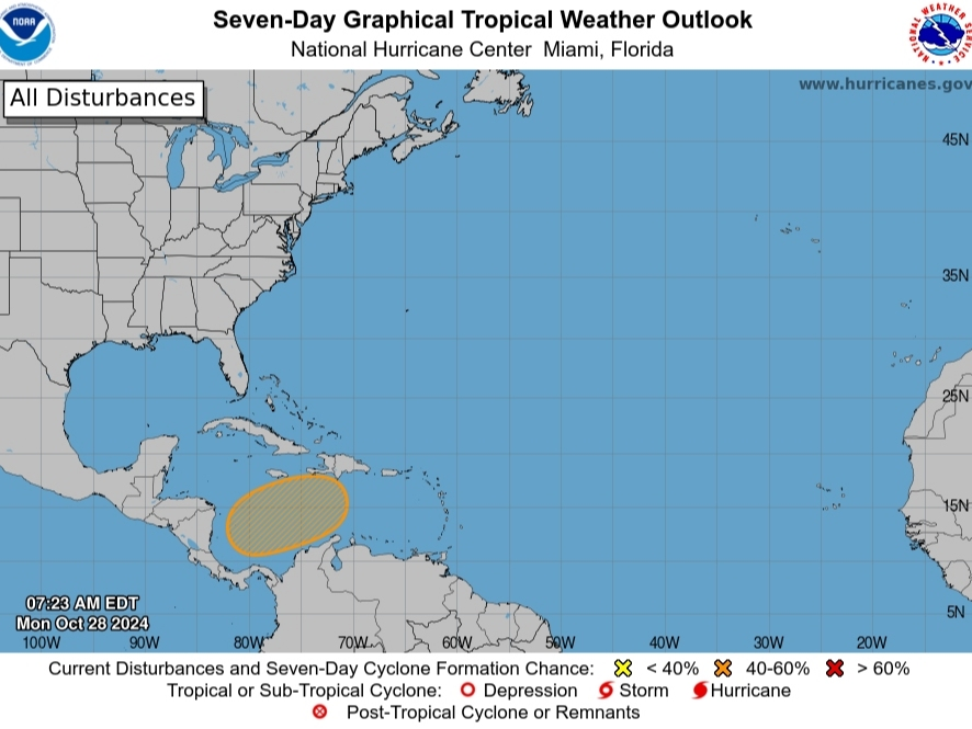 FLÓRIDA — Uma ampla área de baixa pressão está sendo observada para o desenvolvimento de tempestades tropicais no sudoeste do Mar do Caribe “em alguns dias”, o Centro Nacional de Furacões disse.