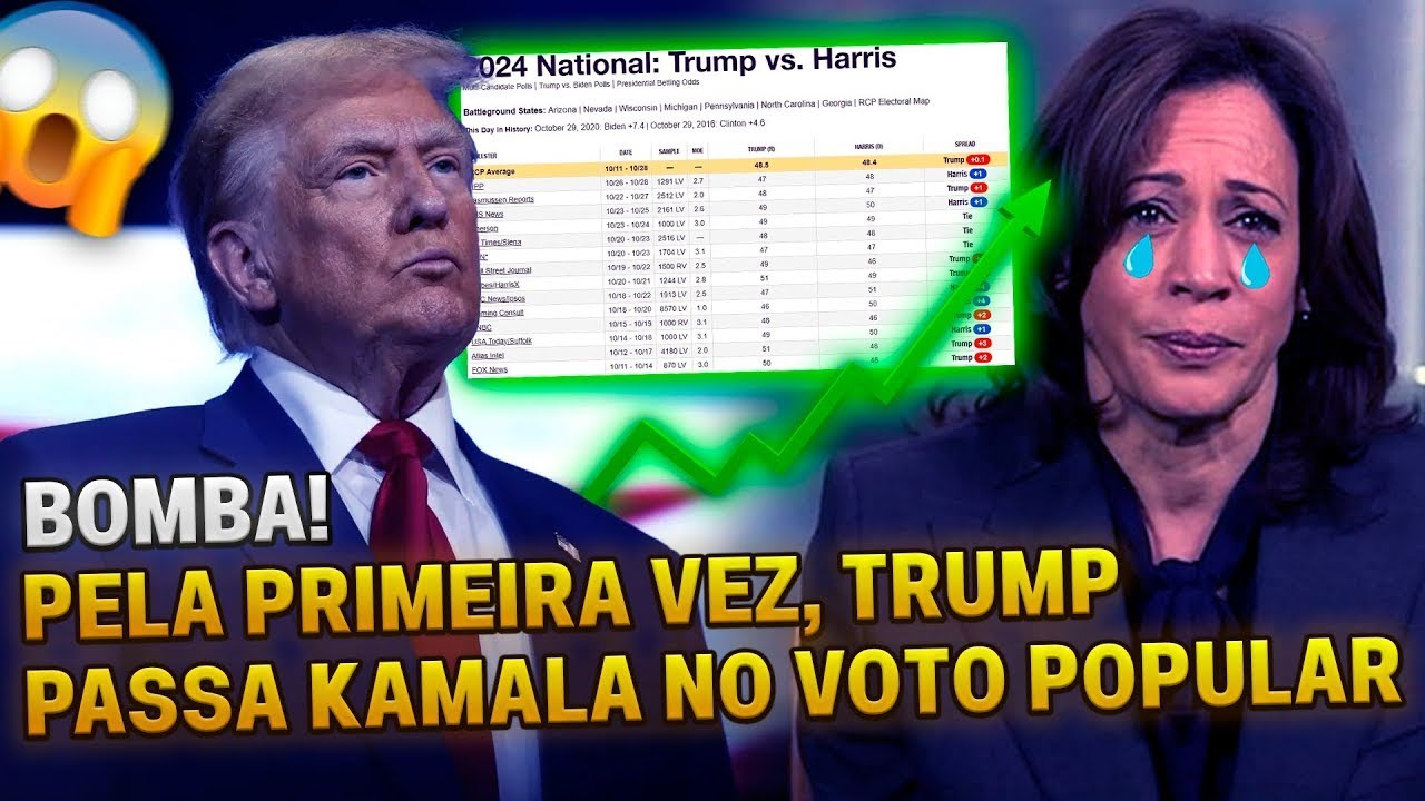 BOMBA! TRUMP ESTÁ À FRENTE DE KAMALA HARRIS NA MÉDIA DAS PESQUISAS DE VOTO POPULAR