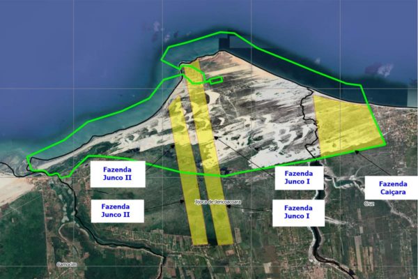 Das três fazendas da tia, conforme o levantamento feito por ele e os primos, cerca de 500 hectares da Junco I, 314,6 hectares da Junco II e toda a extensão da Caiçara (958,8 hectares) foram incorporados ao parque. Com isso, restaram as parcelas de terra fora do traçado e a vila de Jericoacoara, que também não faz parte do parque.