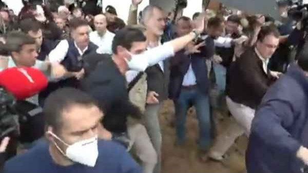 Felipe 6º tentava conversar com alguns moradores da área que acusavam as autoridades de tê-los abandonado à própria sorte e de não oferecer ajuda, enquanto continua a busca por sobreviventes sob a ameaça de novas chuvas torrenciais durante o dia.