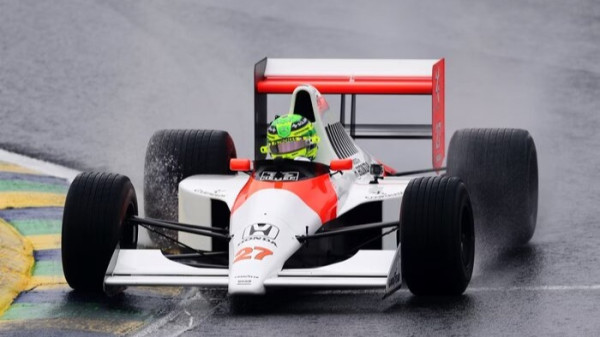 Lewis Hamilton pilotou a MacLaren MP4/5B, que foi carro de Ayrton Senna em 1990 para homenagear o piloto neste domingo (3), no autógromo de Interlagos.