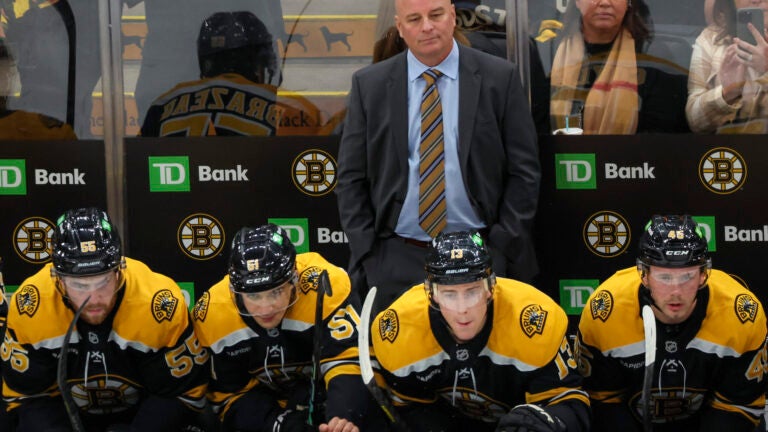 Jim Montgomery e os Bruins mais uma vez lutaram na derrota na prorrogação para o Ottawa no sábado. Foto de Matthew J Lee/equipe da Globe