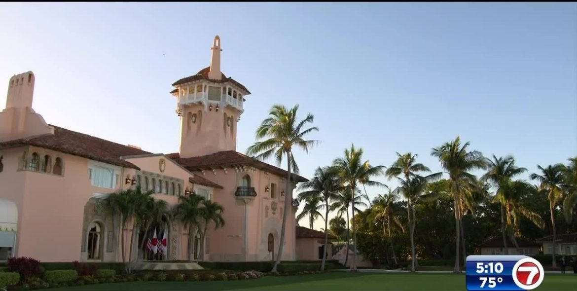 A rotatória em frente à entrada da propriedade está totalmente barricada, e veículos do gabinete do xerife do condado de Beach e do Serviço Secreto foram vistos montando guarda, junto com carros de polícia não identificados, vans pretas e um carrinho de golfe em uma tarde recente.