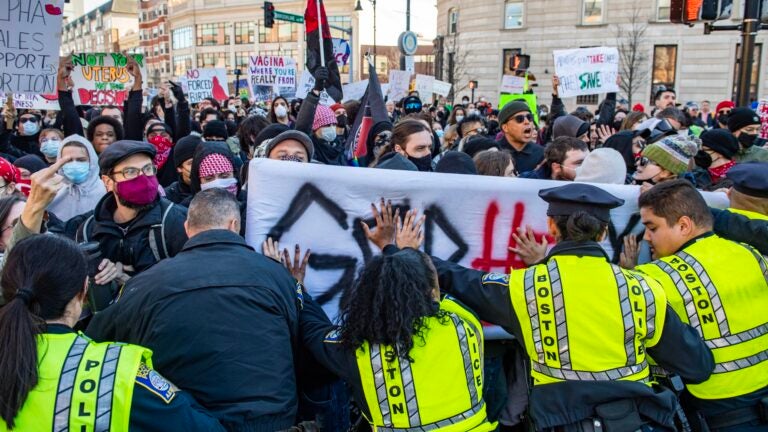 O grupo recebeu ordem de sair do caminho dos manifestantes antiaborto, mas recusou. A polícia de Boston então tentou mover fisicamente a multidão, disse o relatório. Em postagens nas redes sociais de repórteresa polícia pode ser vista com equipamento anti-motim e bastões, reagindo aos manifestantes.