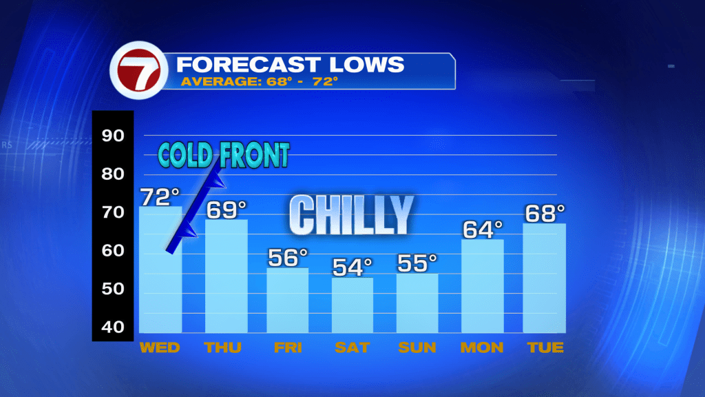 A frente fria mais forte da temporada até agora deve cruzar o sul da Flórida no final desta noite, liberando o ar mais frio desde fevereiro neste próximo fim de semana.