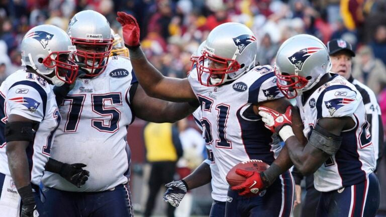 Vince Wilfork (75) e Jerod Mayo (51) foram companheiros de equipe no Patriots por sete temporadas. REUTERS/Andrew Cameron