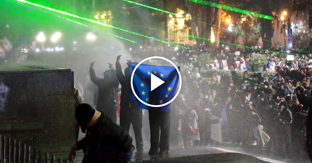 Milhares de pessoas protestaram do lado de fora do parlamento georgiano em Tbilisi pela quinta noite consecutiva, depois que o governo suspendeu os planos de adesão à União Europeia.