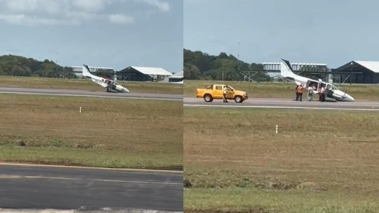 Um avião de pequeno porte realizou um pouso de emergência na manhã desta terça-feira (3) no Aeroporto Internacional de Belém, no Pará.