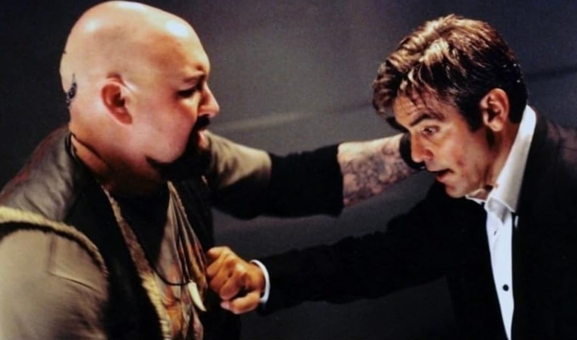 Na estreia de Schwartz em 2001 na franquia “Ocean’s”, Bruiser fingiu espancar o personagem de Clooney, Danny Ocean.