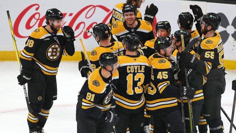 Brad Marchand, do Boston, empatou faltando 5:22 para o fim do tempo regulamentar. Trent Frederic marcou os outros dois gols pelo Boston, que está em 7-2 desde o técnico interino Joe Sacco assumiu o lugar do técnico demitido Jim Montgomery.