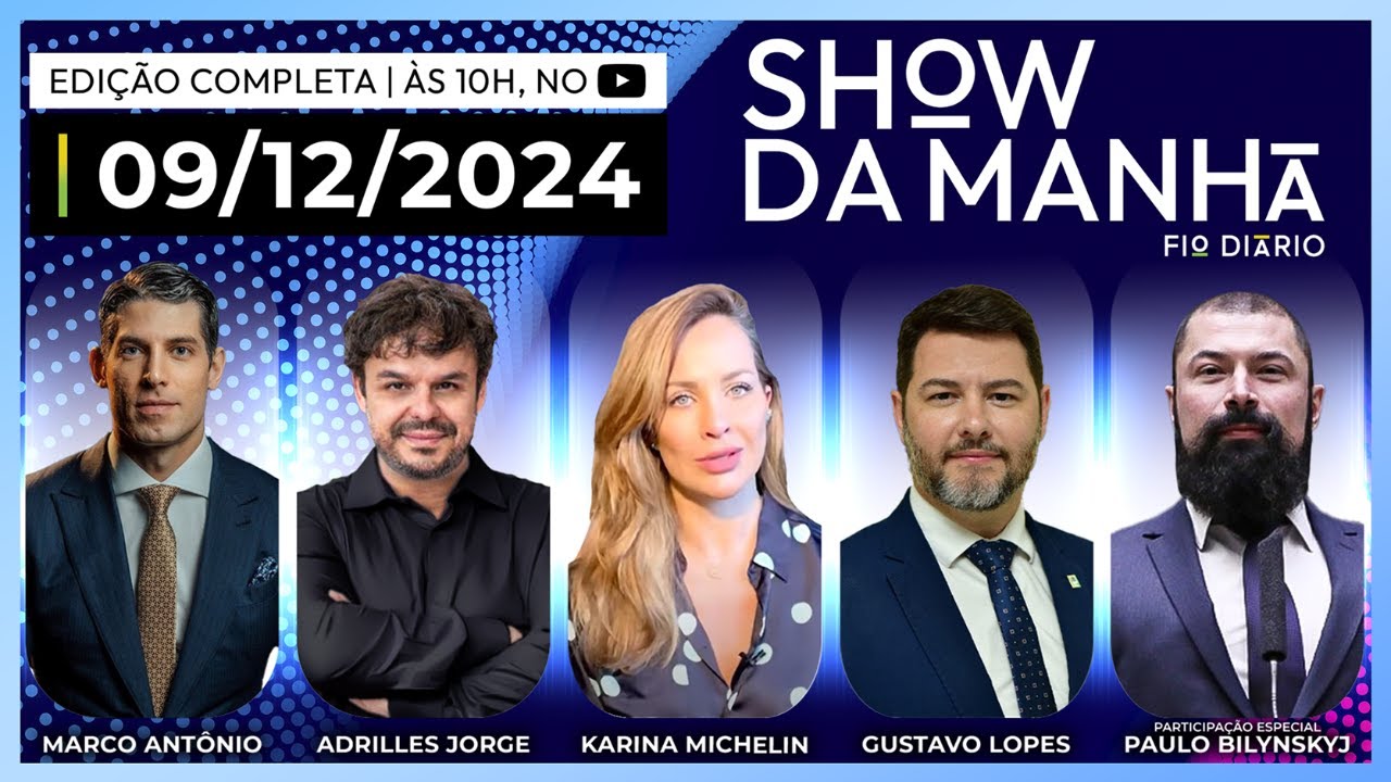 Apresentado por Marco Antônio Costa, com os comentários de Adrilles. Convidados de hoje: Karina Michelin e Gustavo Lopes. Participação especial: Paulo Bilynskyj. O Show da Manhã vai ao ar de segunda a sexta, das 10h às 12h.
