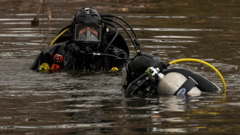 Na segunda-feira, uma pequena parte do parque foi isolada com fita policial azul e branca, dando aos mergulhadores que procuravam um lago uma área para se trocarem e entrarem na água. Unidades K-9 farejaram plantadores cobertos de folhas entre trilhas para caminhada.