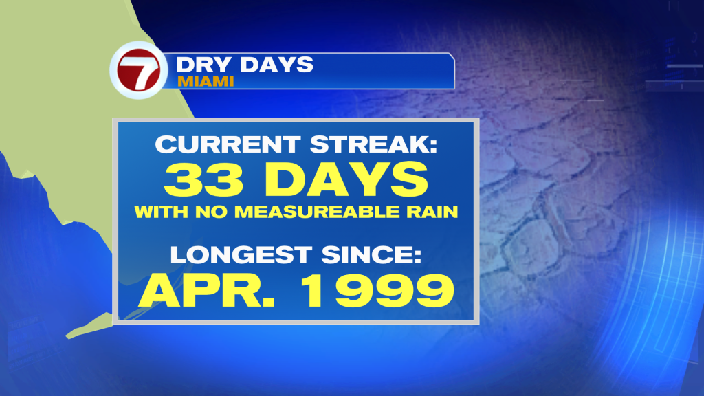 Para ser exato, Miami já passou 33 dias consecutivos sem chuvas mensuráveis ​​– o mais longo desde abril de 1999.
