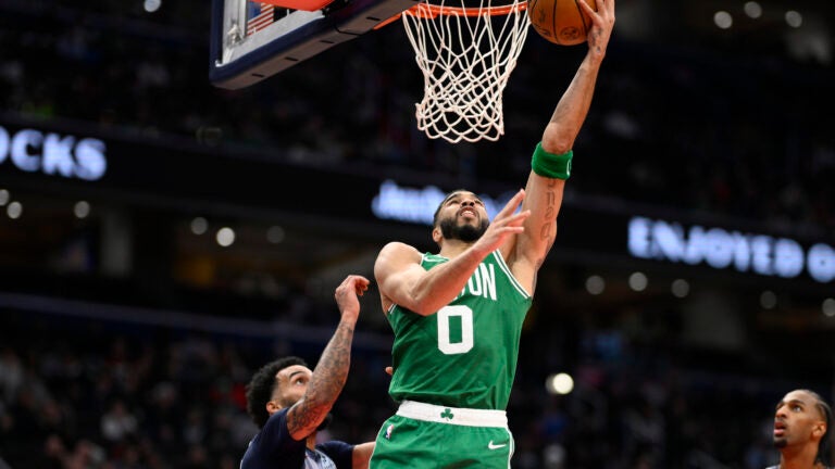 Jayson Tatum teve uma noite relativamente tranquila, mas ainda levou o Celtics à vitória sobre o Wizards no domingo.