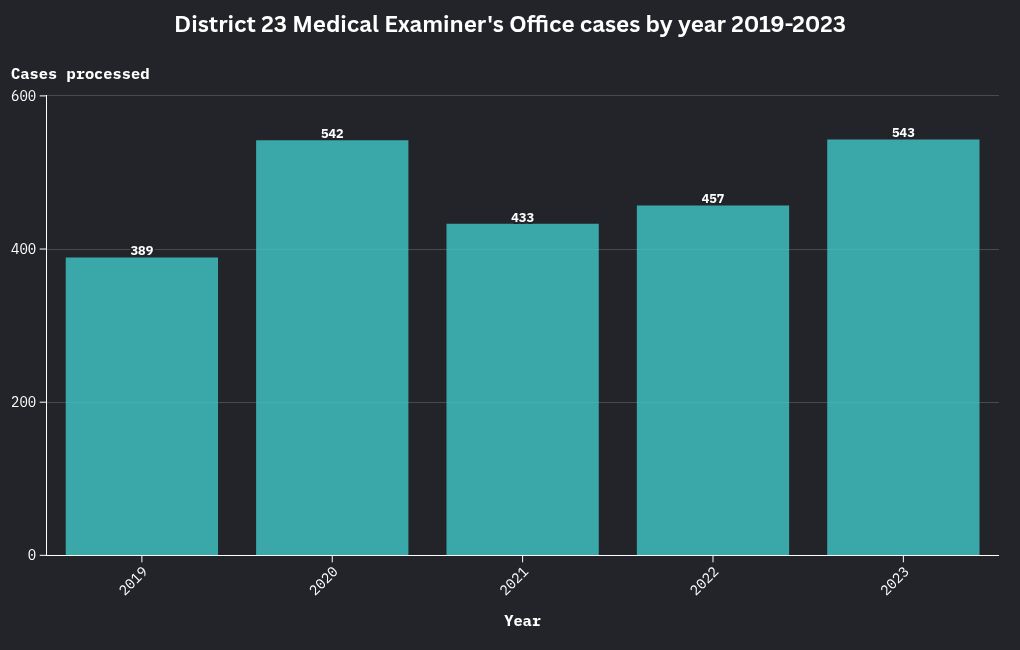 Em 2020, após a declaração da COVID-19 como pandemia, o Gabinete do Médico Legista investigou mais mortes do que num ano médio. Mas no ano passado, o escritório teve aproximadamente o mesmo número de casos que durante o auge da pandemia.