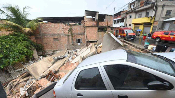 Segundo informações iniciais do Corpo de Bombeiros, quatro pessoas já estão fora da residência com escoriações leves. Militares fazem a retirada de uma vítima soterrada.