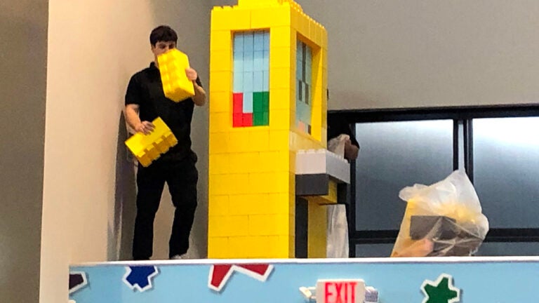 Várias crianças ficaram feridas dentro do centro In The Game em Peabody depois que uma estrutura semelhante a um Lego no átrio desabou sobre elas enquanto subiam. Os trabalhadores removem uma estrutura semelhante acima da entrada, perto de onde a outra desabou.