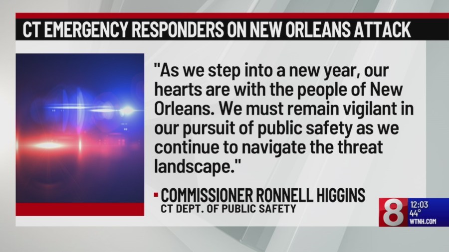 “Ao entrarmos em um novo ano, nossos corações estão com o povo de Nova Orleans”, escreveu o comissário de Segurança Pública de Connecticut, Ronnell Higgins, em um comunicado. “Devemos permanecer vigilantes na nossa busca pela segurança pública à medida que continuamos a navegar no cenário de ameaças”.