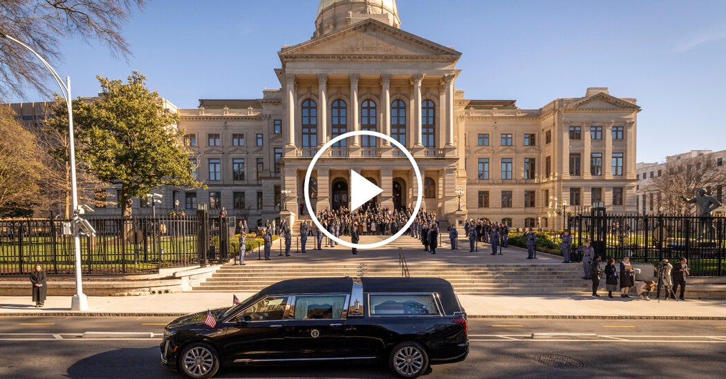 Uma carreata transportando os restos mortais de Jimmy Carter passou pela cidade natal do ex-presidente e pelo Capitólio do Estado da Geórgia antes de terminar no Carter Center para um serviço memorial.