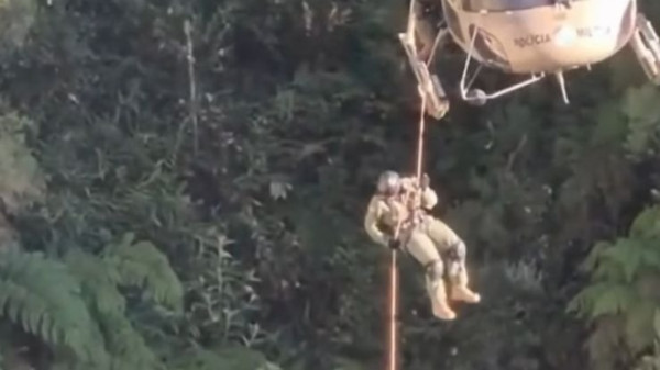 O resgate aconteceu no sábado (4) e envolveu a colaboração do helicóptero Águia da Polícia Militar e equipes de bombeiros. Para retirar o homem do local, os socorristas lançaram um cabo a 70 metros de distância do ponto do acidente, que foi preso à aeronave, permitindo o içamento da vítima.