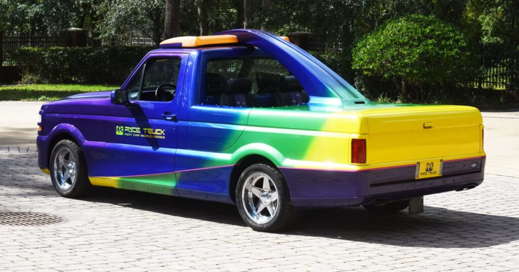 É realmente um passeio incrível – uma picape Ford F-150 1991 customizada, capaz de atingir mais de 210 km/h. Ele liderou alguns dos carros de corrida mais rápidos do mundo nas maiores pistas de corrida do país.