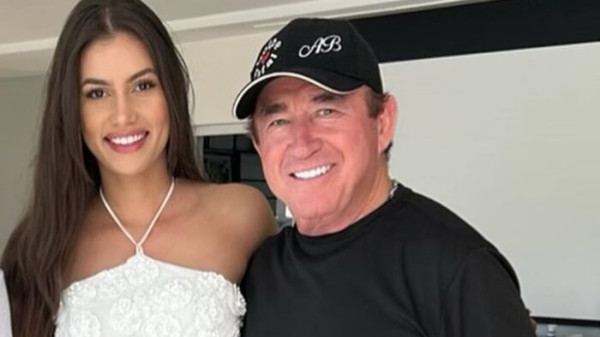 Amado Batista chega em escritório acompanhado de Calita Franciele para comprar uma apartamento de luxo para sua namorada