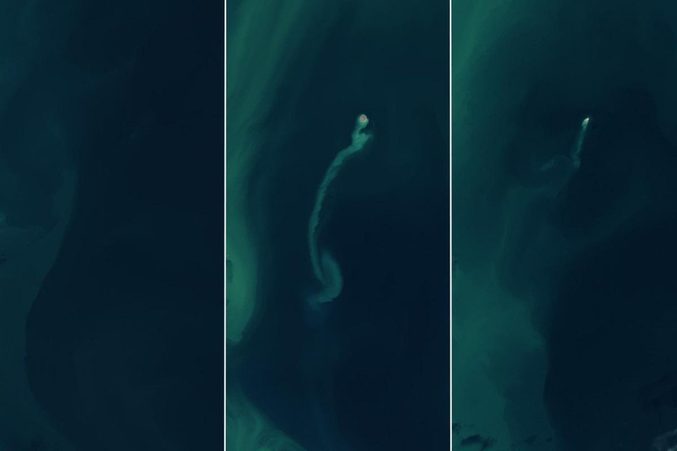 Conforme registraram as imagens da Nasa, a crista estava, em novembro de 2022, abaixo da superfície do mar. Por isso, nada além de água é visto no mesmo local em que, alguns meses depois, em fevereiro de 2023, uma ilha apareceu. Em dezembro de 2024, é possível ver apenas uma pequena porção de terra acima do nível do oceano.