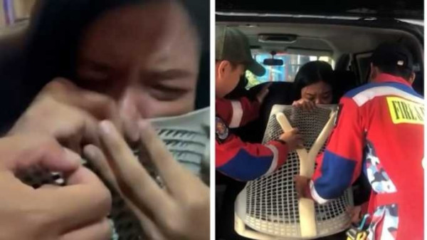 Após chegar no local, os bombeiros brincaram com ela levando uma serra elétrica, apontando que precisariam usar o equipamento para retirá-la da situação. Eles disseram que teriam de cortar o nariz dela.