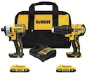 Incluído no Kit de ferramentas elétricas DEWALT é uma chave de perfuração sem escova de 1/2 polegada 20V MAX, chave de impacto sem fio de 1/4 polegada, duas baterias de íon de lítio 2.0Ah, carregador de bateria e uma bolsa de empreiteiro.