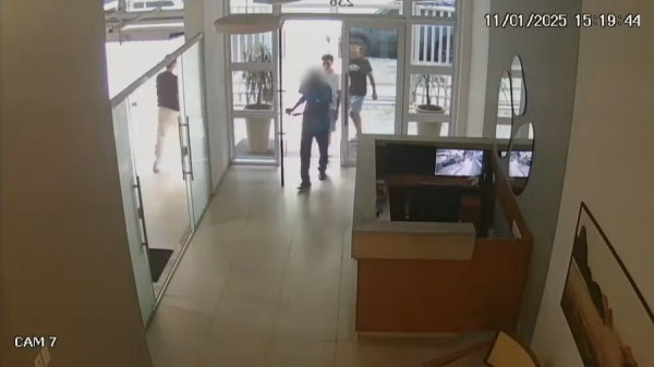 As imagens mostram um dos criminosos conversando com o porteiro. Depois, o bandido retorna com um comparsa, e ambos sobem pelo elevador. Pouco tempo depois, descem com uma mala e passam pela portaria com os itens furtados.