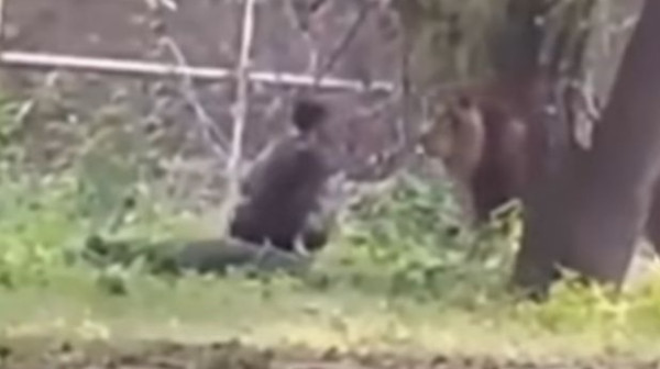 Anteriormente ele já havia contado com ajuda de pessoas que estavam no local, gritando e distraindo o felino.