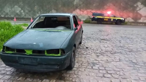 Um carro flagrado com pneus desgastados, apenas metade do volante e sem equipamentos essenciais, como faróis, retrovisores e para-brisa foi apreendido pela Polícia Rodoviária Federal (PRF) neste domingo (16) na BR-101 em Goianinha, na região metropolitana de Natal. O veículo foi classificado pela corporação como “impróprio para circulação”.
