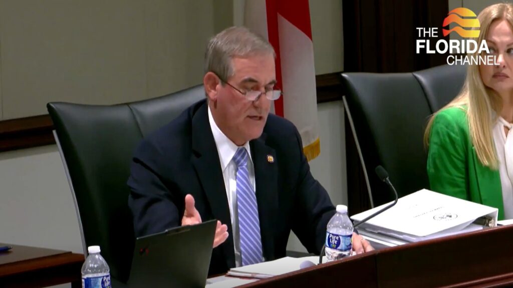 O senador Stan McClain, R-Ocala, falando durante a reunião do Comitê de Assuntos Comunitários do Senado na segunda-feira, 17 de março de 2025. O canal da Flórida