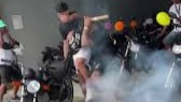 Um empresário ficou ferido na comemoração de uma venda de motocicleta em Feira de Santana, na Bahia. Um vídeo, publicado neste sábado (15), o mostra soltando um rojão na entrada da loja Not Motos após concluir a negociação do automóvel, adquirido por um jovem ao seu lado. O explosivo acerta o teto, ricocheteia e atinge o homem, que derruba a moto e cai na sequência.