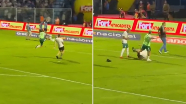 Um jogador da Chapecoense deu uma “voadora” em um torcedor que invadiu o campo após duelo contra o Avaí nesse sábado (23/3). Um vídeo que circula nas redes sociais registrou o momento da agressão.