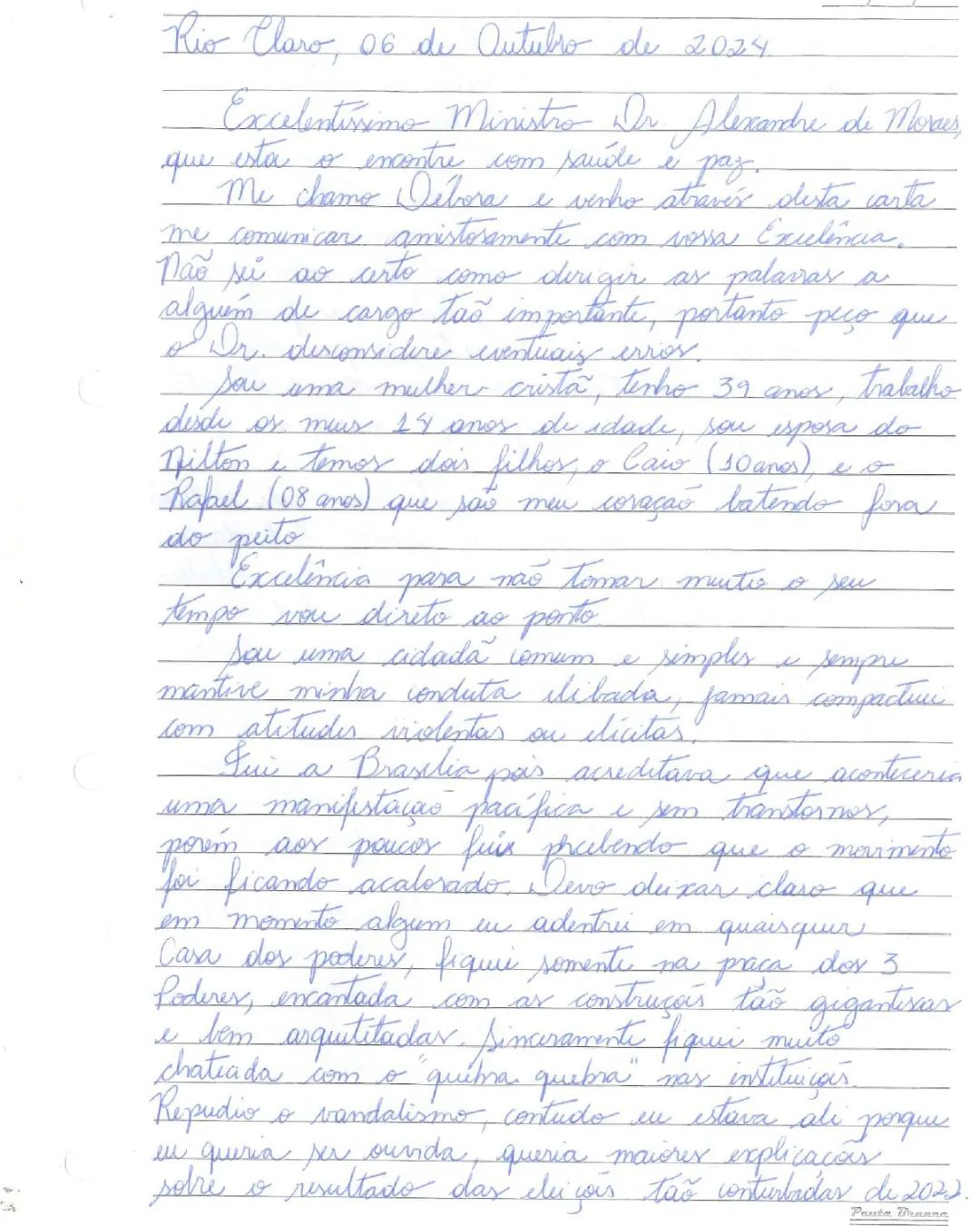A ordem foi expedida pela Secretaria Judiciária do STF nesta quarta-feira (26) e dá acesso a todos os documentos do processo, inclusive à carta de desculpas que a cabeleireira escreveu para o ministro em outubro de 2024.