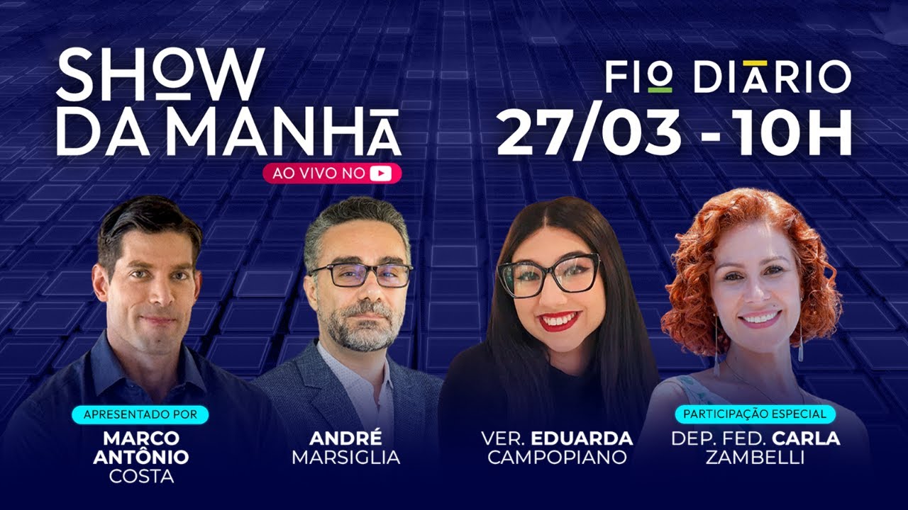Apresentado por Marco Antônio Costa. Convidados: André Marsiglia e Ver. Eduarda Campopiano. Participação especial: Dep. Fed. Carla Zambelli. O Show da Manhã vai ao ar de segunda a sexta, das 10h às 12h.