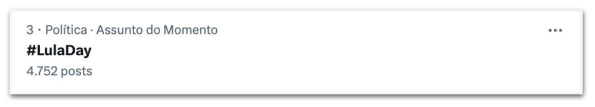 Até as 10h30 desta 3ª feira (1º.abr), a hashtag já era o 3º assunto mais comentado na rede social e contava com 4.752 publicações relacionadas.