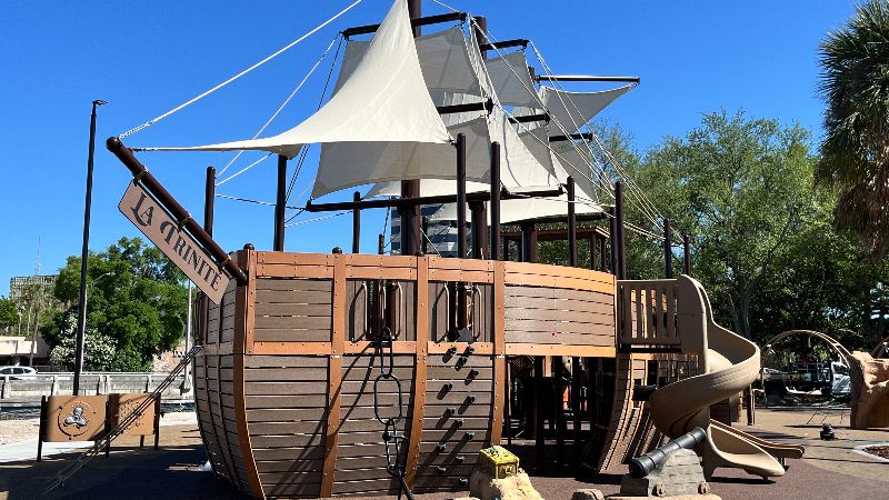 O playground inclui uma versão escalvável de La trinitéAssim, o navio do infeliz colonizador francês Jean Ribaultque foi executado pelos espanhóis perto de Jacksonville nos anos 1500.