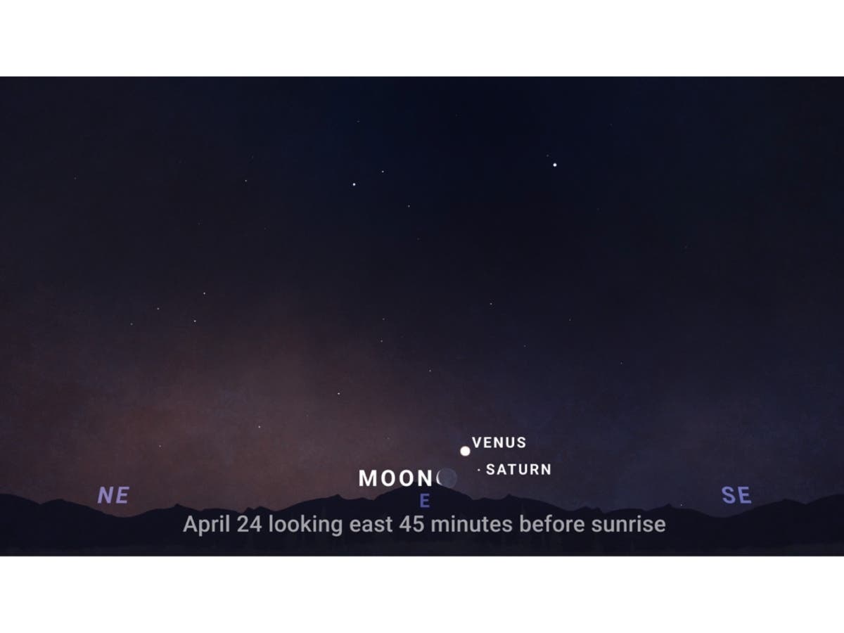 Durante o chamado “Conjunção de rosto sorridente”Vênus e Saturno aparecerão como dois olhos sobre a fina lua crescente que parece um sorriso virado para cima. Para ver o espetáculo, pareça baixo no céu oriental cerca de uma hora antes do nascer do sol.