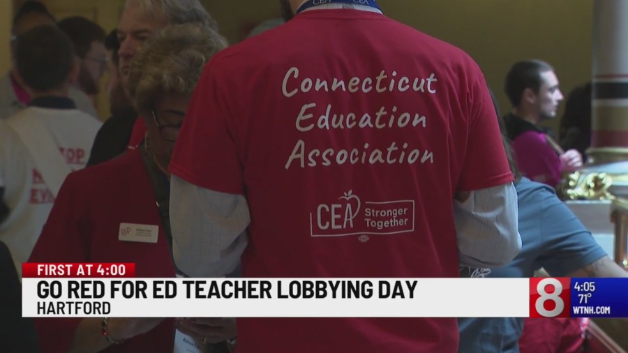 Eles participaram da campanha “Go Red for Ed”, vestindo roupas vermelhas e indo para o Capitólio para o Dia do Lobby da Associação de Educação Connecticut.