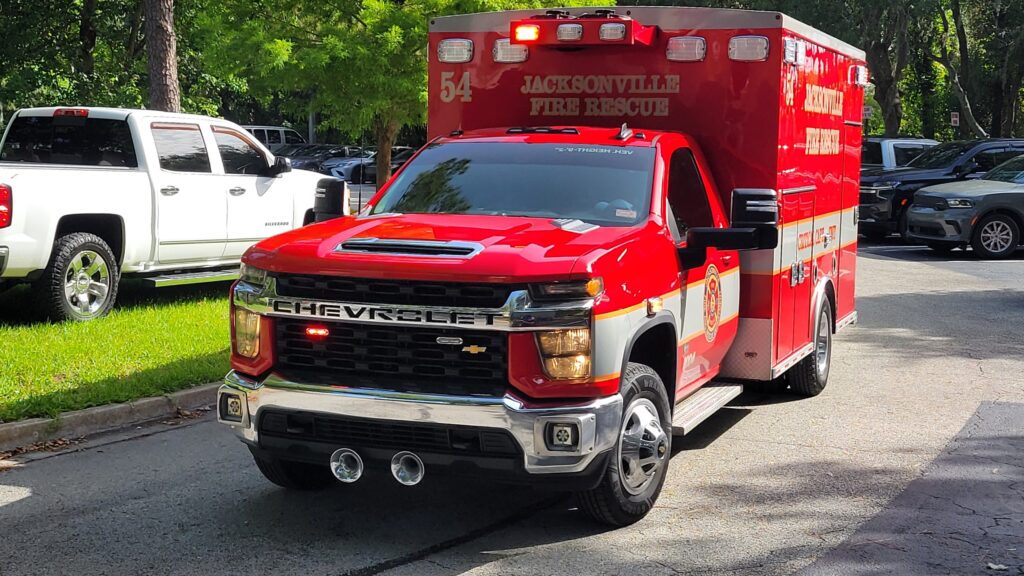 Logo, chegou as ambulâncias do Departamento de Incêndio e Resgate de Jacksonville, encenando no lado norte da escola para lidar com os role-playing adolescentes como estudantes “feridos”. Os paramédicos em equipamentos de proteção percorreram a porta da frente quando mais policiais chegaram para verificar os portões de segurança no campus ou se juntar à pesquisa para dentro do atirador simulado.