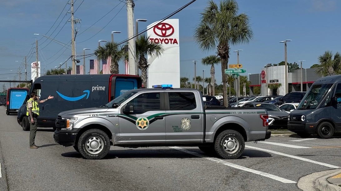 UM: O congestionamento nessa área pode ser temporário. O porta -voz da Amazon, Austin Stowe, diz que a Comissão de Conservação de Peixes e Vida Selvagem da Flórida recebeu uma permissão temporária para direcionar o tráfego durante a instalação de um novo semáforo.