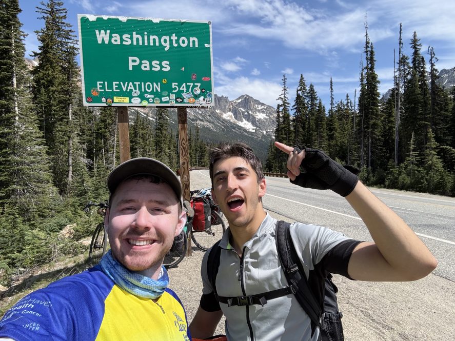 “É lindo aqui!” Ele disse. “Fizemos nossas maiores escaladas de bicicleta ainda nas Cascades aqui no estado de Washington, até subindo o Washington Pass com sua elevação de 5.500 pés. É muito difícil, mas tudo da América que vimos até agora tem visões incríveis”.