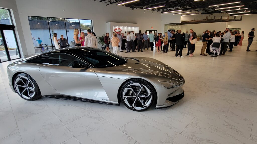 Este cupê esportivo Karma Kaveya estava em exibição na grande inauguração da concessionária automotiva Karma no Beach Boulevard em março de 2024. Dan Scanlan, Jacksonville hoje