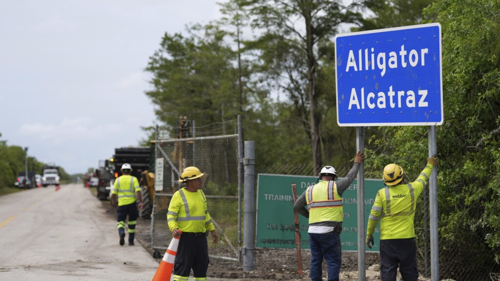 O estado deste mês começou a operar o centro de detenção em um local remoto cercado pelos Everglades e pela Big Cypress National Reserve, como DeSantis e outros líderes republicanos da Flórida ajudam na deportação em massa de Trump de imigrantes indocumentados.