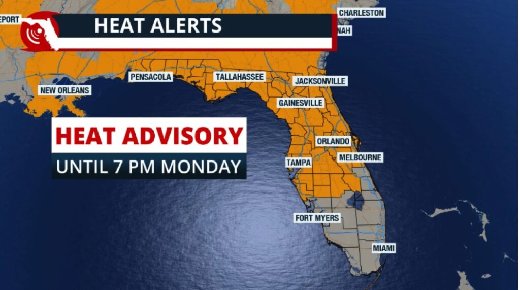 Os avisos de calor estão em vigor no norte da Flórida, com temperaturas queimadoras que podem parecer pelo menos 103 graus.