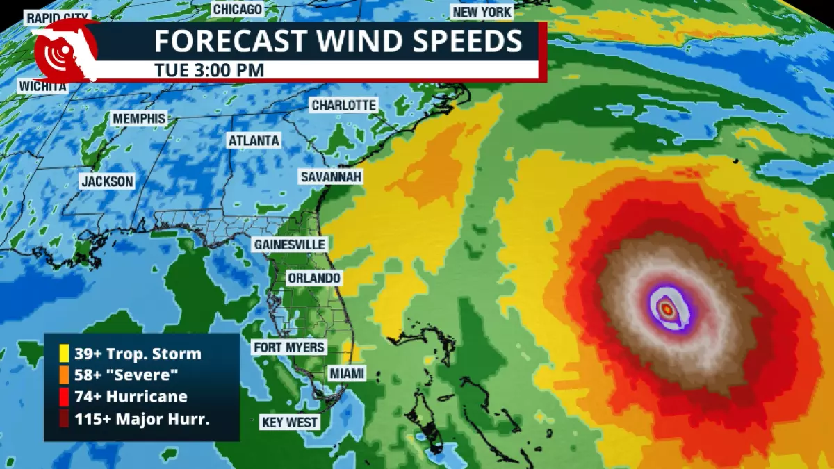 Na terça -feira de manhã, Erin ficará paralelo à costa leste da Flórida, mas fica a mais de 600 milhas a leste. No entanto, o poder do furacão virará os mares e trará ondas altas ao longo da costa leste da Flórida através da costa leste.